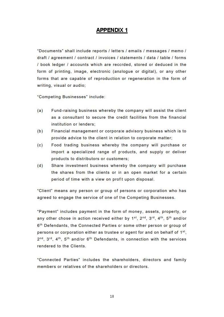 This Writ of summons against the Defendants to claim the loss incurred arising from the misconduct of the Defendants involving diversion of the Plaintiffs’ clientele/business opportunities/profits, competing business, misuse of the Plaintiffs’ confidential documents/ information and destructions of the Plaintiffs’ documents.