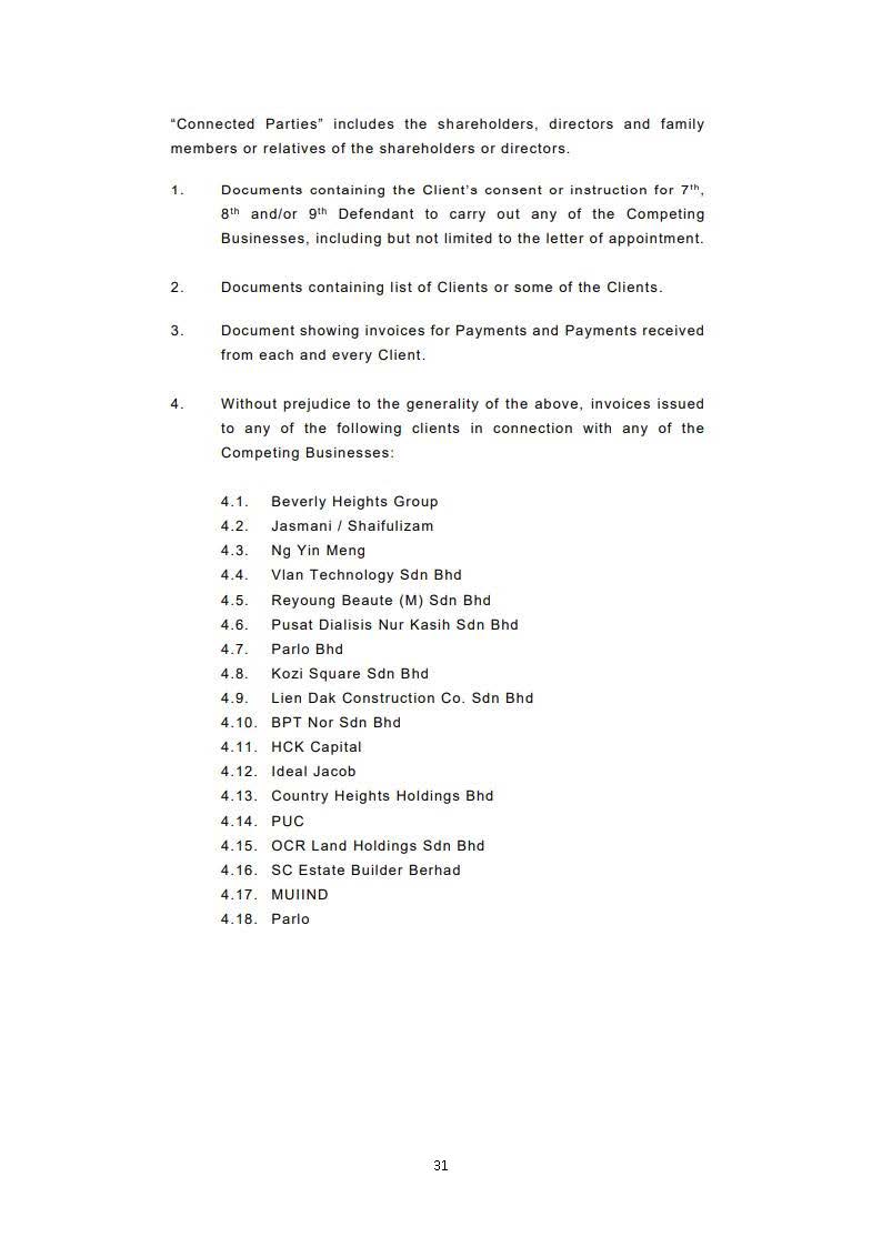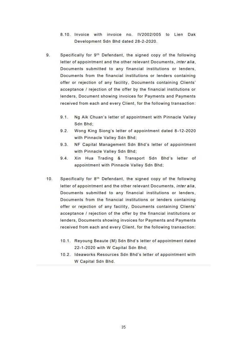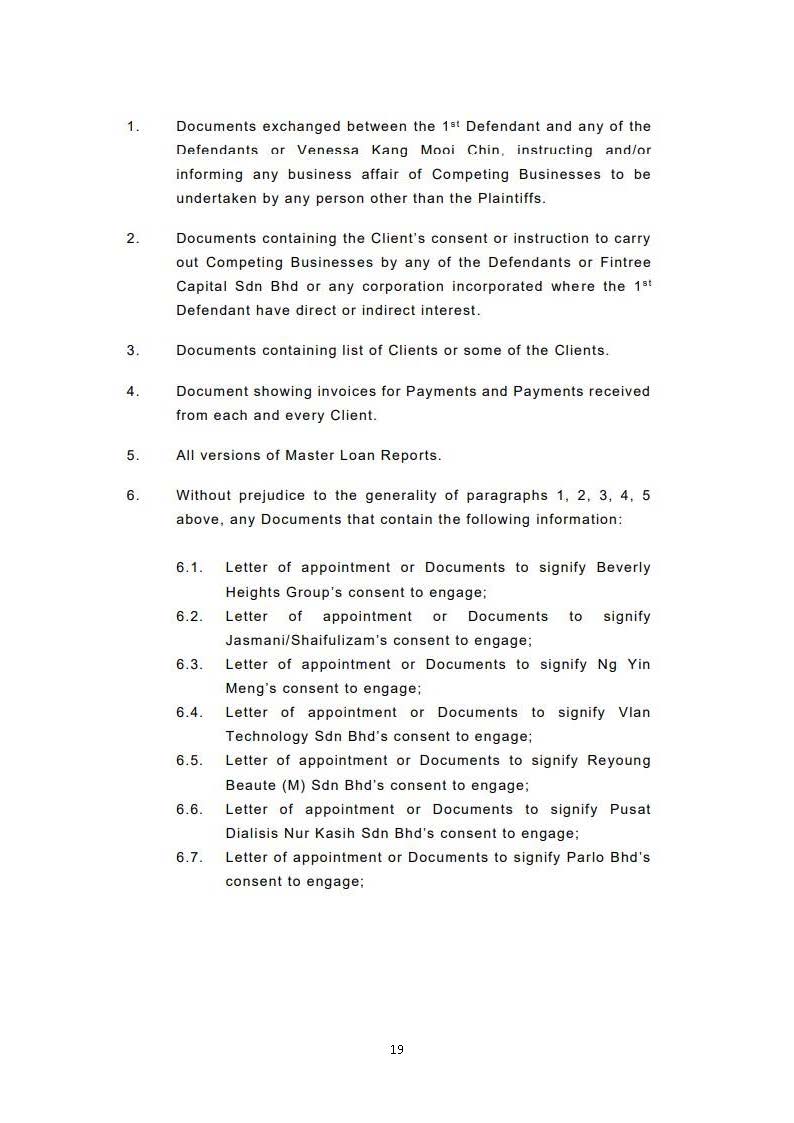 Having discovered the wrongful transfer and/or destruction of the Plaintiffs' documents/information by Liew, an action was filed in the Kuala Lumpur High Court (Civil Suit No. WA-22NCC-623-12/2020) ("Suit 623") by the Plaintiffs against Liew and Fintree. An ex-parte Anton Piller order was also granted by the court to raid Fintree to recover stolen documents.