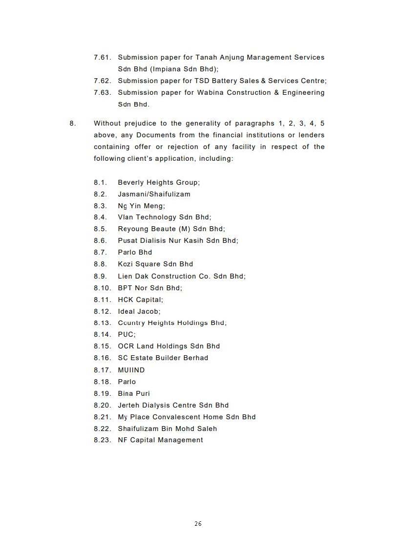 This Court denied Prayer 1 as it would entail the Plaintiffs to have too wide an access to documents that they are seeking. It would also be an abuse of process if it is allowed as it means that the Plaintiffs will have a general sweep of all held by the Defendants.